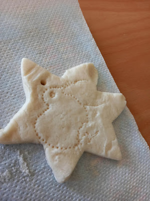 Delrio made the salt dough by following a recipe and divided it up so each of the children could roll their own dough and cut various shapes, before popping it into the oven to harden.They decorated them with paint, leaves and flower petals before sealing them with a coat of PVA glue.
